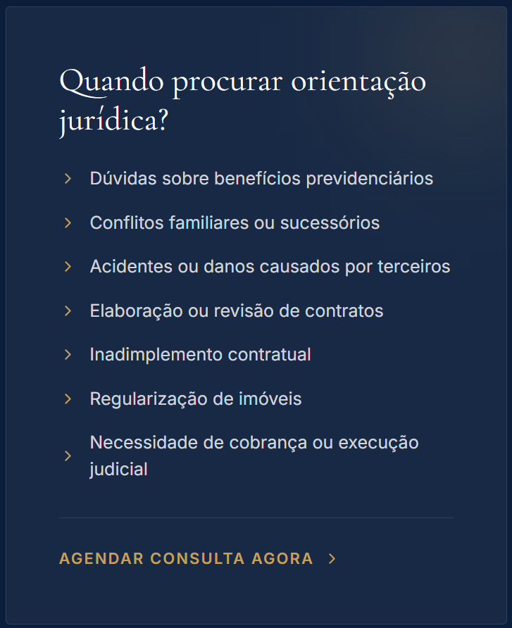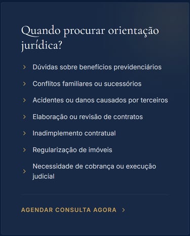 "A assessoria jurídica especializada é o pilar fundamental para a mitigação de riscos e a salvaguarda de interesses em demandas que envolvem a gestão patrimonial, o planejamento previdenciário e a resolução de litígios cíveis ou contratuais."